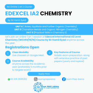 Let’s join an online Extensive Edexcel IAL Unit 1 Chemistry (WCH14) Course by Sir Kamil Syed starting from August 2024. The extensive session would cover entire syllabus with rigorous past paper practice. As a legacy of EPA, the session would start with a free orientation session.